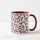 tazón de café en una huella digital, minimalista, animal en un patrón de chita - puntos en marrón / borgoña, sobre un fondo blanco