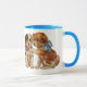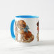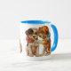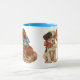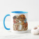 ¡Amor Cachorro! El amor al ilustracion vintage y el diseño romántico con dos adorables cachorros. El adorable perro cachorro chica tiene un arco rosado y el adorable cachorro de niño tiene un arco azul.