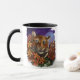 ¡Muéstrate tu señal de animal zoológico chino con este mágico año de la taza de tigre! Arte digital de un tigre con dragón oriental y rodeado de lirios tigres. Derechos de autor de arte para Erin Cooper