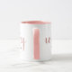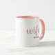 Taza de Café de Esposa del Año de Establecimiento Personalizable en una fuente de escritura, perfecta como regalo de bodas o aniversario para parejas. Aquí en un tono rosa y blanco.