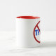 La taza anti Donald Trump con mango rojo. Trump escribió de azul con un círculo rojo y una línea a través de él. Mensaje simple y claro contra votar por Trump.