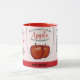 La retro clase mundial Apple Love Jam Coffee Mug de mamá. Mano hecha a mano de Apple Jam empacada con la etiqueta de amor de mamá. El regalo perfecto para el Día de la Madre o el Cumpleaños. El diseño de la taza contiene datos nutricionales, información alérgica y citas de madres humildes.