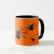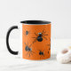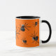 Usa este tonto tazón de araña teñida de insectos cuando haces trucos o tratas en Halloween o en cualquier época del año. No asustarán a nadie, pero seguro que te darás muchas risas y golosinas. Las arañas negras con los ojos blancos saliendo de sus cabezas están dispersas en un fondo naranja.