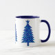 Mug en una silueta clásica de un árbol de Navidad de azul zafiro oscuro, con estampados de satén texturado en agua y azul hielo