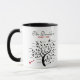 Una taza de "Family Keepsake" con un árbol negro de esténcil que contiene 20 nombres. Puede ajustar los nombres de 20 miembros de la familia en esta taza, y puede editar todo el texto que contiene. Este sería un regalo perfecto para el Día de la Madre o para los Navidades.