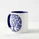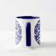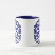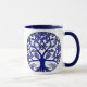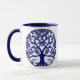 Mug en un nudo celta estilizado, árbol de diseño de vida en la marina oscura / azul índigo, sobre fondo blanco
