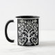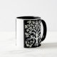 Taza Árbol floral de la vida en blanco sobre negro