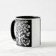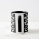Mug en un estilizado, flor y hoja, árbol de diseño de vida en blanco sobre fondo negro
