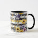 Un cuadro floral vibrante e intrincado con girasoles, margaritas y flores silvestres sobre un llamativo fondo rayado negro y amarillo.