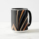 This abstract Art Deco design exudes luxury and sophistication with its sweeping metallic arcs in gold, copper, and grey against a deep black background. Symmetrical curves converge towards a central focal point, framed by sharp angular lines and vertical patterns, evoking glamour and retro elegance. Perfect for elevating home decor, office art, and stylish accessories with a timeless, opulent aesthetic.