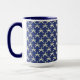 Esta taza presenta una interpretación moderna de un patrón geométrico simple. Está adornado con una forma repetitiva y estilizada inspirada en una estrella o un jeroglífico abstracto, representado con una estética contemporánea y limpia. El estilo artístico es audaz y gráfico, con una paleta de colores limitada de azul marino oscuro y beige claro que da a entender el rico contraste que se encuentra en muchos patrones históricos. Este diseño combina la sencillez de un patrón minimalista con un motivo eterno y repetitivo, lo que lo convierte en una adición elegante y funcional a tu cocina que evoca la majestuosidad de la belleza intemporal del arte antiguo egipcio.