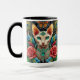 Diseño de Mug de Arte Floral de Gato Sfinx Blanco.