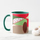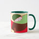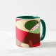 Café con arte geométrico, color marrón, beige, verde, rojo
