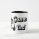 This asexual pride gaymer mug is a bold, confident celebration of ace identity inside gaming culture. A tiger paw grips an asexual pride flag controller in black, grey, white and purple with "Game On!" in bold script — clean, striking and unmistakably ace gaming energy wrapped around a premium mug with a black handle and interior.