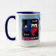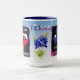 Diseño de taza único con Aubrey y FM 1385 Road junto con las flores Bluebonnet de Texas sobre azul claro. La flor Bluebonnet es la flor del estado de Texas. En marzo y abril, estas hermosas flores florecen en los campos y medios de las autopistas.