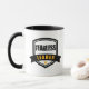 Taza audaz del líder - negro y oro - escudo, bandera y estrella