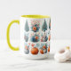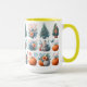 Celebrate the seasons with this ceramic mug featuring a festive grid of decorated Christmas trees, pumpkins, floral arrangements, and a whimsical gnome. Perfect for coffee, tea, or hot chocolate, this cheerful mug makes a thoughtful gift for autumn and winter lovers, adding cozy charm and seasonal joy to your daily routine.