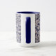 Ave y Mug de Anemone - embelleciendo este producto es Ave y Anemone, un diseño de William-Morris hecho tanto para papel pintado como para tela. Creado por Morris en 1881 y publicado en 1882, el patrón presenta flores y follaje de anémona entrelazados, con repeticiones de aves en color claro sobre fondo azul oscuro.