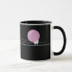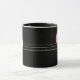 Curiosa taza de café de pichón con dos divertidos pájaros en un cable atascado con varas de chicle masticado. Un pájaro soplando una gran burbuja rosa, otro pájaro pisando chicle. Utilice la plantilla de texto sencillo para agregar un nombre, monograma, iniciales o dicho gracioso. Editar para cambiar el fondo negro a cualquier color que desee. ♡ Idyllfire