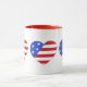 El ceramic mug presenta un original ilustracion de marca de un corazón patriótico rojo, blanco y azul. ¿No ves lo que estás buscando? ¿Necesita ayuda con la personalización? Haga clic en "Contactar con este diseñador" para tener algo creado sólo para usted.