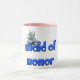 Maid Of Honor en letras grandes azul audaz y un ramo de flores de bonito boda personalizado café o taza de té. Reemplace el texto de la plantilla. Haga clic en el Personalizar para agregar texto y para cambiar el tamaño del tipo de letra, el estilo y el color. Disponible en diferentes tamaños y estilos. Por favor visite mi galería para ver más tarjetas y regalos de boda y de novia. ¡Gracias por pasarse por Smilin' Eyes Treasures!