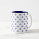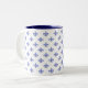 Taza de café azul del modelo de la flor de lis. Consiga el rosa para un "su y el suyo" taza de café.
