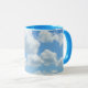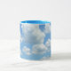 Una imagen del cielo y los colores azules de descoloramiento con las nubes blancas hinchadas.