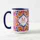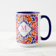 Monograma naranja rosa azules azulejos mexicanos personalizados nombre mug. Los colores llamativos de los ojos para una ocasión especial pueden ser como regalo, regalos de dama de honor, favores de fiesta nupcial o cualquier regalo de ocasión