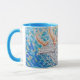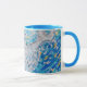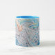 Una fantástica criatura con una mezcla de ballena y toro presenta deslizamientos a través de un vibrante fondo azul giratorio. Los colores se mezclan en un estilo de mosaico, mejorando la presencia mítica de la criatura.