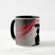 En un fondo rojo, una elegante silueta de una bailarina sostiene delicadamente un paraguas en la mano, con una gracia y un encanto exuberantes. Los colores contrastantes resaltan el movimiento dinámico de los personajes, creando una atmósfera única de misterio y expresión artística.