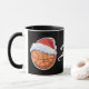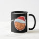 Baloncesto Red Santa Hat Merry Christmas Coffee Mug. Baloncesto divertido con un sombrero rojo de Santa sobre un fondo negro.
