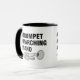 El texto de la etiqueta #Trumpet #Marching #Band con la imagen de una trompeta es un regalo único para los miembros de la banda de música de bronce durante el campamento de bandas y la temporada de fútbol.