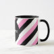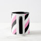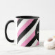 Tubo de café de franjas negra, blanca y rosa diseñado con rayas diagonales de negro, blanco y rosa. Hace un gran regalo para el hogar o un obsequio de medias. Por https://www.zazzle.com/store/celestesheffey
