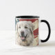 Esta taza patriótica presenta un retrato de acuarela de un hermoso perro de los Grandes Pirineos colocado sobre un fondo gris de la bandera de Estados Unidos. Puede agregar texto, si lo desea, eligiendo Personalizar.