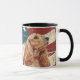 Esta taza patriótica presenta un retrato acuarela de un perro Cocker Spaniel de color hoz colocado contra un fondo gris de la bandera de Estados Unidos. Puede agregar texto, si lo desea, eligiendo Personalizar.