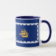Mug con la bandera de la ciudad de Quebec, la capital de Quebec, Canadá. Una bandera azul con un contorno blanco y un barco amarillo en el centro