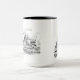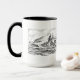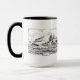 Mug with drawings of the famous German battleship Bismarck of world war II with the name of the ship written with fraktur letters.