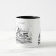 Mug with drawings of the famous German battleship Bismarck of world war II with the name of the ship written with fraktur letters.
