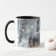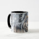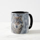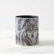 A beautiful wolf in snow in the forest. A wonderful nature outdoors enthusiast coffee cup or mug.