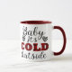 Bebé, hace frío afuera en la tipografía negra con la palabra frío en rojo y negro manchado de búfalo y dos corazones en un patrón de manchas de búfalo negro y blanco. ¡Esto es una tonada divertida para el invierno y los Navidades! Vea la colección para divertirse camisetas familiares y decoración casera. ¡Harían camisetas familiares perfectos para Navidades!