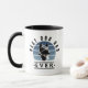 German shepherd dog (Alsatian dog ) against a circular blue retro sunset design. Wording reads "Best Dog Dad Ever".