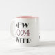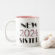 Elija el estilo y la taza de color que desee con texto en rosa y negro que diga Nueva hermana y fechado en 2024.