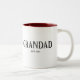 Diseño de taza de café Abuelo con año de establecimiento con una fuente estampada en negro sobre un fondo blanco. Visita nuestra tienda para ver esta taza en una gran variedad de nombres de abuelos.