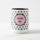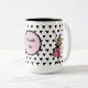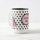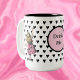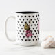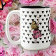 Añade un poco de blancura a Alicia en el País de las Maravillas con este diseño centrado en el corazón. El fondo tiene unos corazones negros diminutos, y después Alicia, de color rosa, está llegando hacia arriba a ambos lados de la taza. En el medio, en un círculo rosado, están las palabras "Bebame". El texto es editable si es necesario, siempre que se ajuste al espacio. Por ejemplo, podría incluir en su lugar las iniciales del cliente o del destinatario. Este diseño agrega un poco de asombro y humor a los cuentos, con los acalorados corazones blancos y negros en el fondo. Este diseño es un buen complemento para un boda temático Alicia en el país de las maravillas, fiesta de cumpleaños, duchas, aniversario, hito literario u otras ocasiones divertidas.