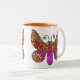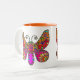 Taza Bicolor Amarillo rosado anaranjado de la mariposa del