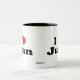 ¡Amo a Juan! ¿Es su nombre Juan? ¿Usted tiene una esposa, una novia, un miembro de la familia femenino o un amigo femenino que usted sepa amores usted? ¿O usted tiene un marido, un novio, un miembro de la familia masculino o un varón Juan nombrado amigo que usted ame profundamente? ¡Si es así éste "que amo" la taza es exactamente el regalo que usted está buscando! Las características del diseño la letra "yo" en letras negras con un corazón rojo en el top y el "Juan" en letras negras en la parte inferior.