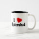 ¡Amo Hyderabad! ¿Es usted de Hyderabad, la India? ¿Usted tiene un amigo o un miembro de la familia que amen Hyderabad, la India? ¡Si es así esto "amo" la taza II que muestra que el amor para Hyderabad es exactamente el regalo que usted está buscando! Las características del diseño la letra "yo" en letras negras con un corazón rojo en el top y la "Hyderabad" en letras negras en la parte inferior.