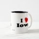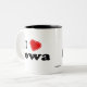 ¡Amo Iowa! ¿Es usted de Iowa? ¿Usted tiene un amigo o un miembro de la familia que amen Iowa? ¡Si es así esto "amo" la taza II que muestra que el amor para Iowa es exactamente el regalo que usted está buscando! Las características del diseño la letra "yo" en letras negras con un corazón rojo en el top y el "Iowa" en letras negras en la parte inferior.