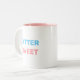 Taza Bicolor Amortiguado en un off de dos tonos de color turque