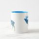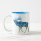 Este diseño es el contorno de un alce con un gradiente de color azul a beige y la silueta de un árbol dentro.